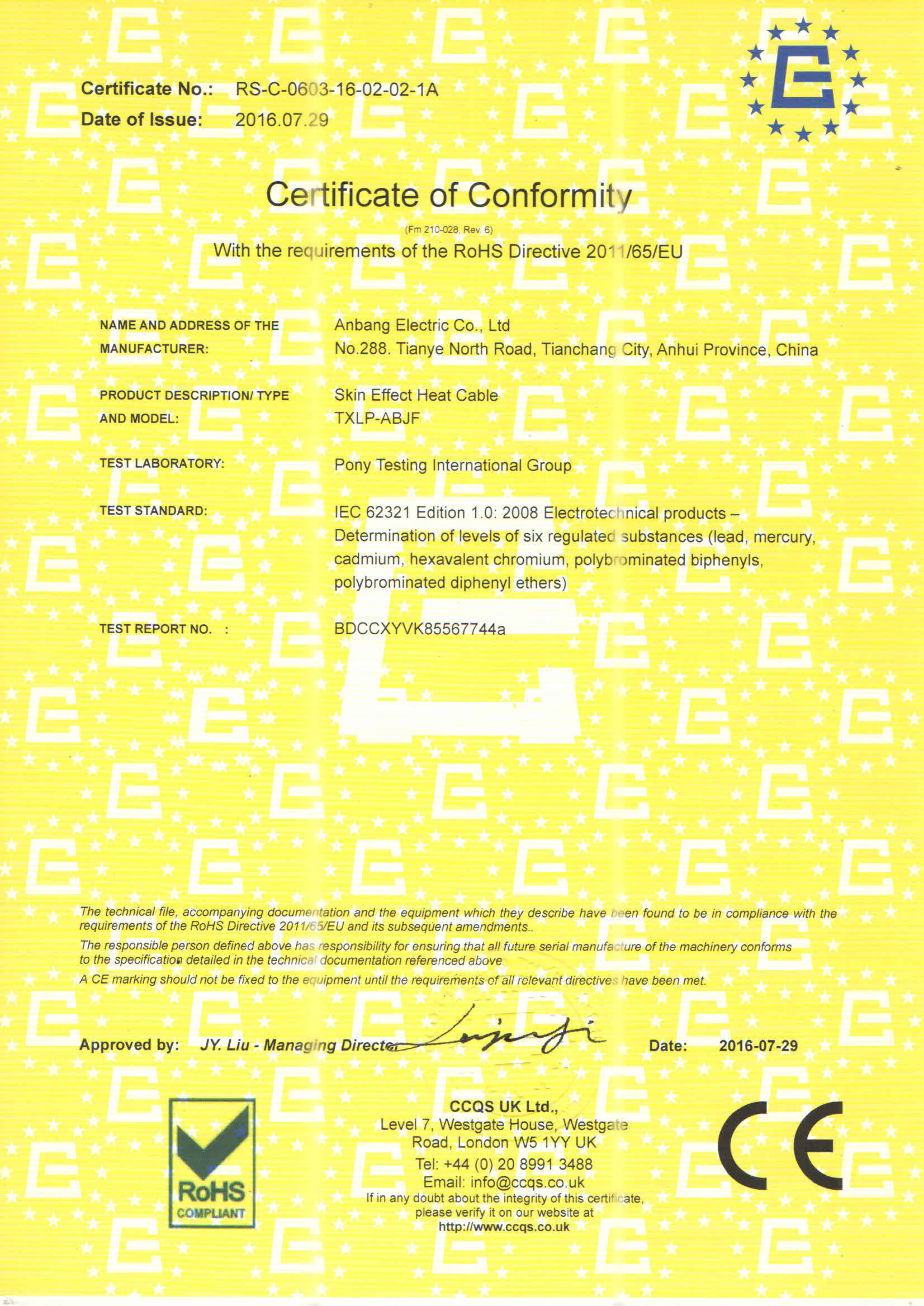 安邦電氣股份有限公司,總部位于北京市長(zhǎng)安街,成立于2004年,注冊(cè)資金10088萬(wàn)。安徽生產(chǎn)基地占地面積63000平方米,擁有66套各類(lèi)生產(chǎn)線(xiàn),其中進(jìn)口生產(chǎn)線(xiàn)6套。國(guó)家高新技術(shù)型企業(yè),滁州市市長(zhǎng)質(zhì)量獎(jiǎng)企業(yè),專(zhuān)精特新“小巨人”企業(yè),擁有國(guó)家知識(shí)產(chǎn)權(quán)局授權(quán)的45項(xiàng)專(zhuān)利,其中發(fā)明專(zhuān)利28項(xiàng) , 主筆《太陽(yáng)能熱利用自限溫電熱帶安裝規(guī)范》行業(yè)標(biāo)準(zhǔn),參編《自限溫電伴熱帶》國(guó)家標(biāo)準(zhǔn)、《工業(yè)和商業(yè)用電阻式伴熱系統(tǒng)》國(guó)家標(biāo)準(zhǔn)、《太陽(yáng)能熱利用自限溫電熱帶》行業(yè)標(biāo)準(zhǔn)、《爆炸性環(huán)境 電阻式伴熱器》國(guó)家標(biāo)準(zhǔn)等7項(xiàng)國(guó)家標(biāo)準(zhǔn)。企業(yè)通過(guò)UL認(rèn)證,國(guó)家強(qiáng)制性 CCC產(chǎn)品認(rèn)證,ISO9001質(zhì)量管理體系認(rèn)證,ISO14001環(huán)境管理體系認(rèn)證,ISO45001職業(yè)健康安全管理體系認(rèn)證,Q/SHS0001.1健康、安全與環(huán)境管理體系認(rèn)證,歐盟防爆ATEX認(rèn)證,歐盟CE認(rèn)證,RoHS認(rèn)證,俄羅斯海關(guān)聯(lián)盟認(rèn)證,國(guó)家防爆電氣CCC證書(shū)。產(chǎn)品系列:集膚伴熱系統(tǒng)、電伴熱系統(tǒng)、電加熱器、電地暖系統(tǒng)、集儀器儀表、電線(xiàn)電纜、高低壓配電柜(箱)、電纜橋架、閥門(mén)管件等等設(shè)計(jì)、制造、銷(xiāo)售。產(chǎn)品應(yīng)用于航天航空、軍工、石油、石化、天然氣、機(jī)場(chǎng)、化工、鋼鐵、隧道、消防、養(yǎng)殖、融雪化冰、室內(nèi)供暖、國(guó)家電網(wǎng)及眾多電廠(chǎng)等等國(guó)家重點(diǎn)工程。出口美國(guó)、英國(guó)、德國(guó)、俄羅斯、韓國(guó)、日本、哈薩克斯坦、烏克蘭、伊朗等眾多國(guó)家。