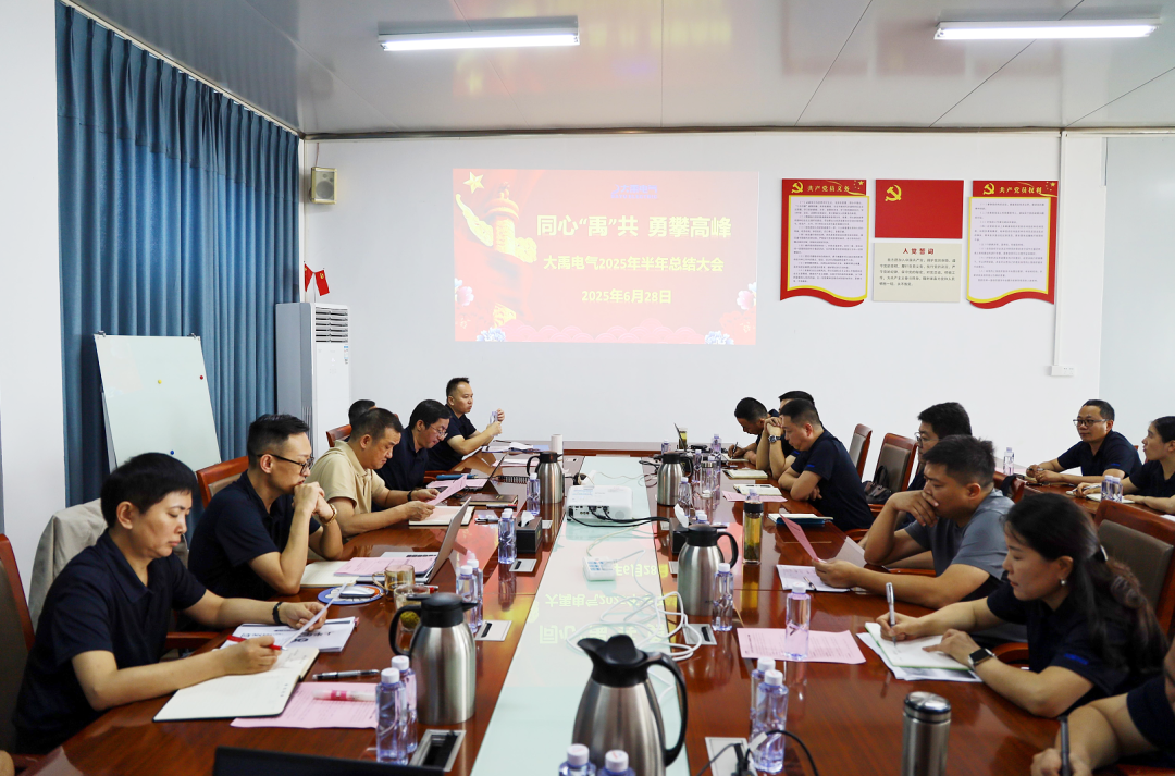 2025年6月28-29日,大禹電氣科技股份有限公司半年工作總結(jié)會(huì),在公司3號(hào)會(huì)議室隆重召開(kāi)。此次會(huì)議立足宏觀經(jīng)濟(jì)復(fù)蘇乏力、行業(yè)競(jìng)爭(zhēng)格局深刻變革的大背景,全面復(fù)盤上半年工作,精準(zhǔn)錨定下半年發(fā)展方向,為企業(yè)高質(zhì)量發(fā)展擘畫(huà)藍(lán)圖。